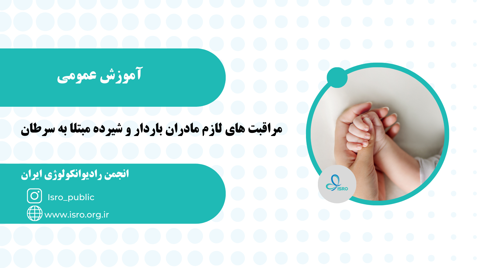 مادران باردار و شیرده مبتلا به سرطان نیاز به مراقبتهای خاصی دارند. در ادامه، به برخی از مراقبتهای لازم برای مادران باردار و شیرده مبتلا به سرطان اشاره میکنیم. اما این نکات تنها جهت اطلاع رسانی است و بهتر است با پزشک مربوطه خود در مورد موارد خاص مشورت کنید: